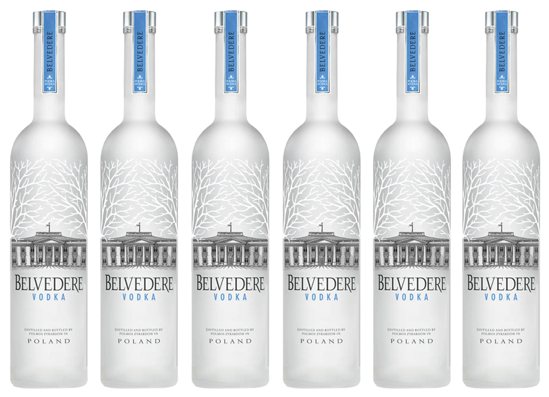 6 Bouteilles Belvedere Vodka 70cl (Vides) : Un design épuré et élancé, avec le bouchon bleu signature.